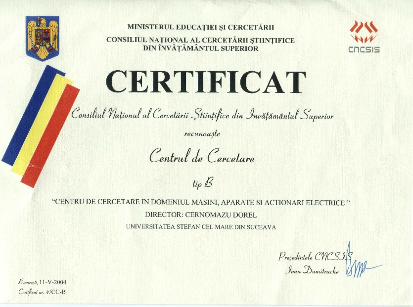 Centrul de Cercetare în domeniul Maşini, Aparate, şi Acţionări Electrice a fost creat în anul 2004.