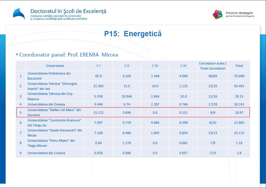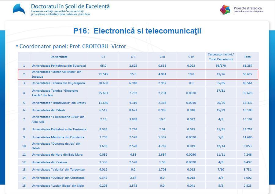 locul 2 - Calculatoare si tehnologia informatiei - locul 3 - Inginerie energetica - locul 5 - Inginerie electrica -